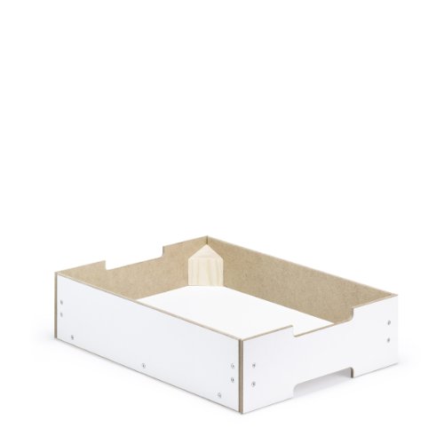 Die Mehrordnungsbox MOX_3 kompakt mit den Maßen B 395 x T 295 x H 100 mm wird komplett montiert geliefert. Die Seitenwände aus einseitig weiß beschichteten MDF-Platten sind über Dreieckleisten aus Fichtenholz fest miteinander verschraubt. Seiten und Boden sind ebenso über Fichtenleisten verschraubt, die unterseitig als Kufen hervorstehen und ein sicheres Stapeln ermöglichen. Hinweis: Aufgrund der Kufenkonstruktion fällt das Höhenmaß innen um 32 mm geringer aus als das Höhenmaß außen!
