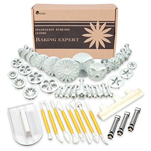 45 tlg AUSSTECHER Ausstechform Auswerfer Stempel + Modellierwerkzeug + Glätter + Randverzierung Fondant Marzipan Tortendeko