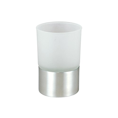 axentia Zahnputzbecher "Neapel", Badausstattung, WC-Zubehör aus rostfreiem Edelstahl und hochwertigem Glas, Zahnbürstenhalter als modernes Badaccessoire, Becher für Küche und Haushalt, Stiftehalter für Bürobedarf und Schreibwaren, Ø ca. 6,7 cm, H ca. 10 cm, rund