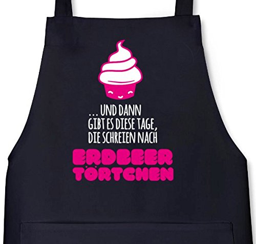 bieten Shirtstreet24, Erdbeertörtchen, Grillen Barbecue Grill Schürze Kochschürze Latzschürze, Größe: onesize,Schwarz