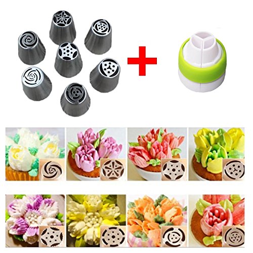 Verkauf Dreamland 12Stk / 7Stk Edelstahl Russische Torte große Spritztüllen, Kuchendekoration Rohrdüsen Icing Piping Tipps Kit Extra Groß Düsen DIY Backen Werkzeuge (7)